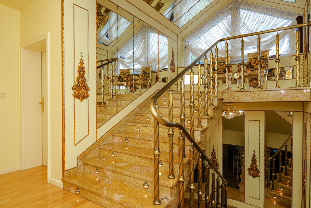 Piętro: pokój z siłownią, łazienka, pralnia, pokój z wyjściem na balkon, duża garderoba,