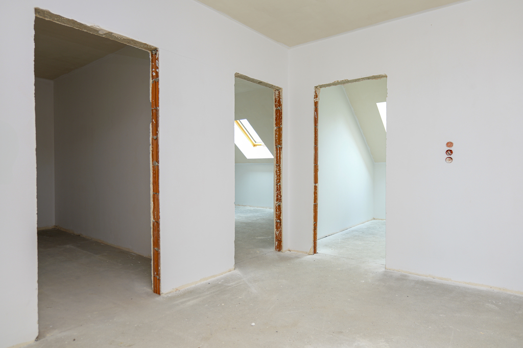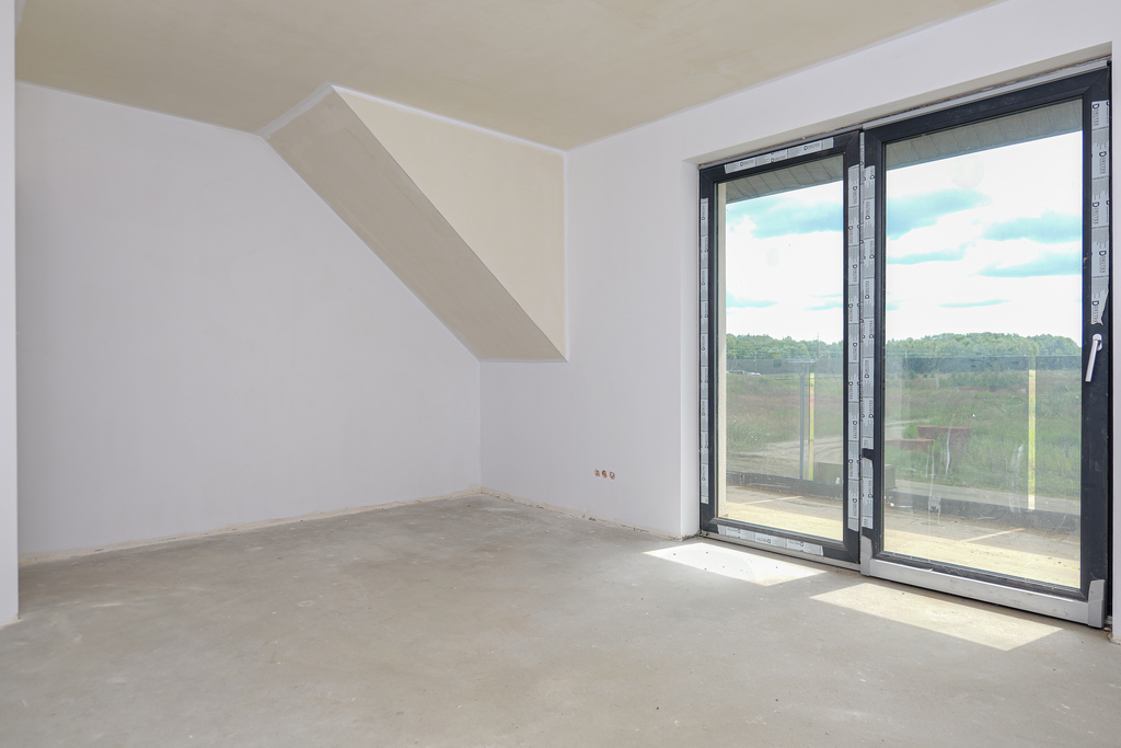 Wnętrza są przygotowane do dalszych prac wykończeniowych: malowania, montażu podłóg, armatury oraz zabudowy meblowej.