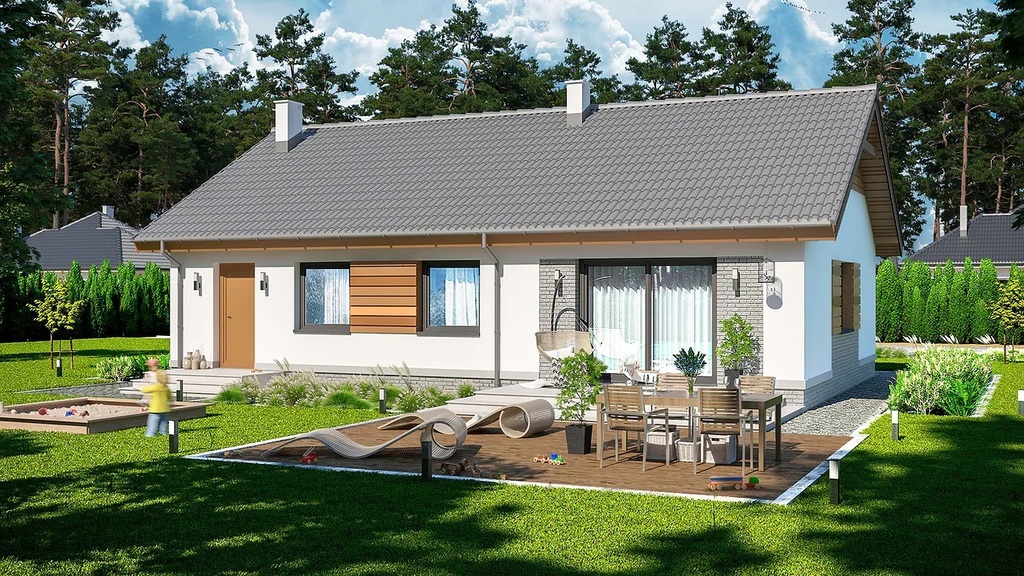 dom parterowy o powierzchni ~ 99,38 m², budowany przez renomowanego dewelopera EKOTECHNIKA, cena obejmuje wykończenie w stanie surowym zamkniętym.