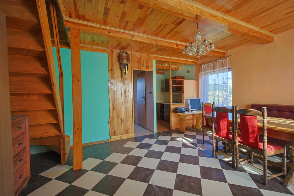 Dom jest częściowo umeblowany – gotowy do zamieszkania lub wykorzystania jako dom letniskowy.