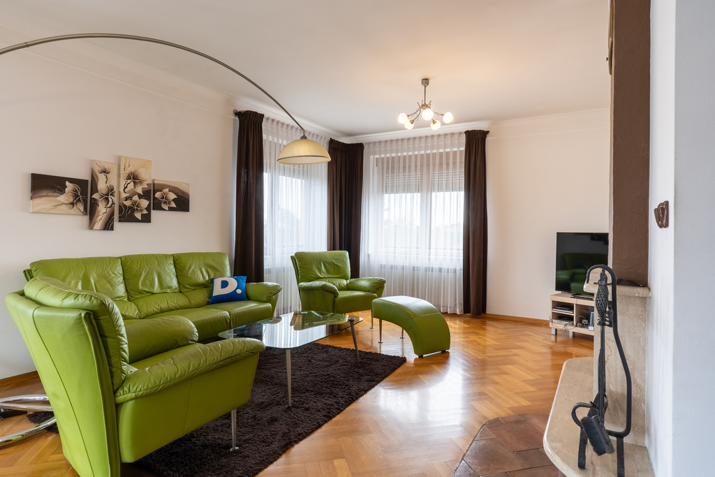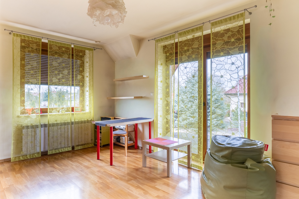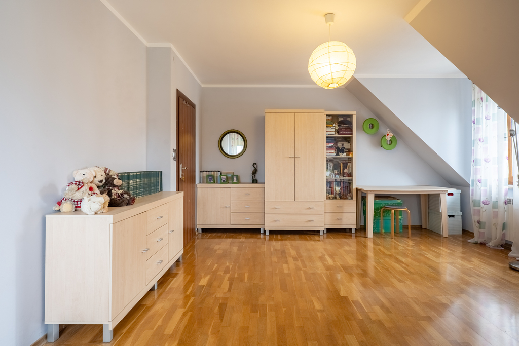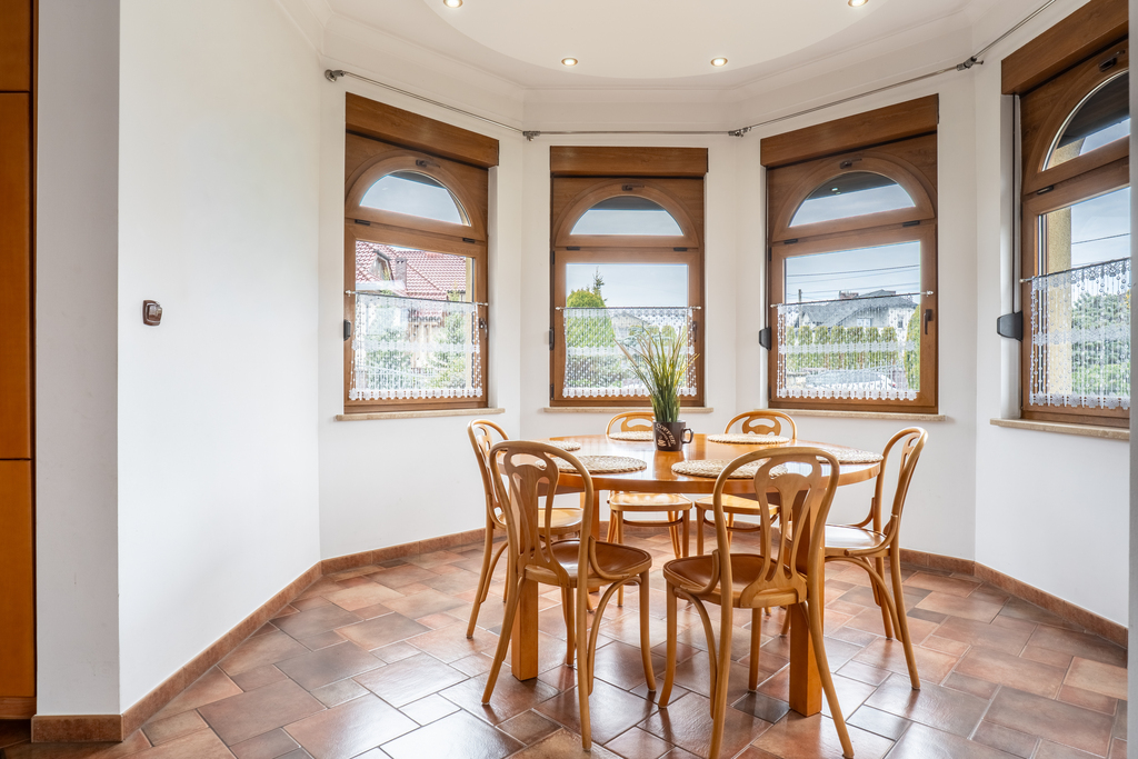 Rozkład pomieszczeń: 6 pokoi – idealne dla dużej rodziny lub do pracy zdalnej, 2 łazienki (wyposażenie : prysznic, wannę, umywalkę, WC, bidet, grzejnik drabinkowy oraz okno), kuchnia otwarta, widna – zabudowa meblowa wraz ze sprzętem AGD (lodówka, zmywarka, okap, piekarnik, płyta elektryczna),balkon klasyczny.