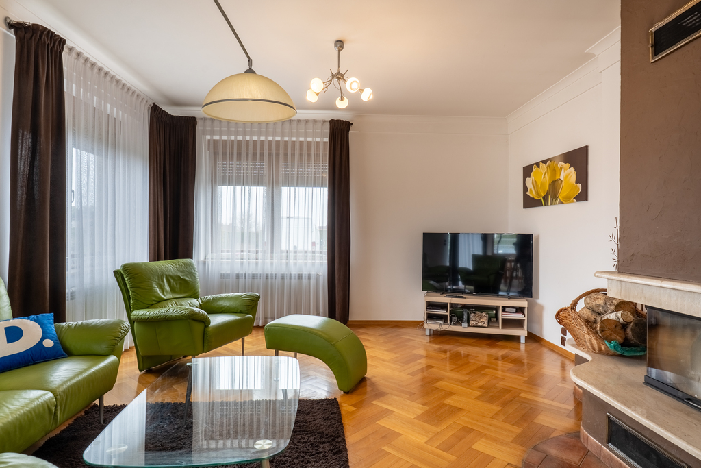 Udogodnienia: kominek tworzący przytulną atmosferę, klimatyzacja, rolety antywłamaniowe, domofon.