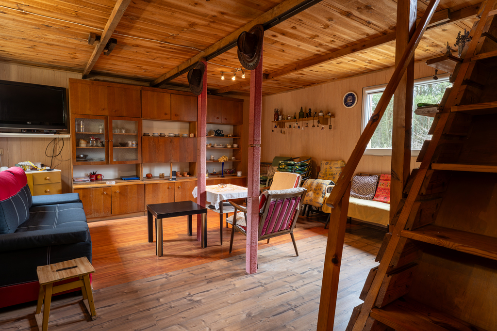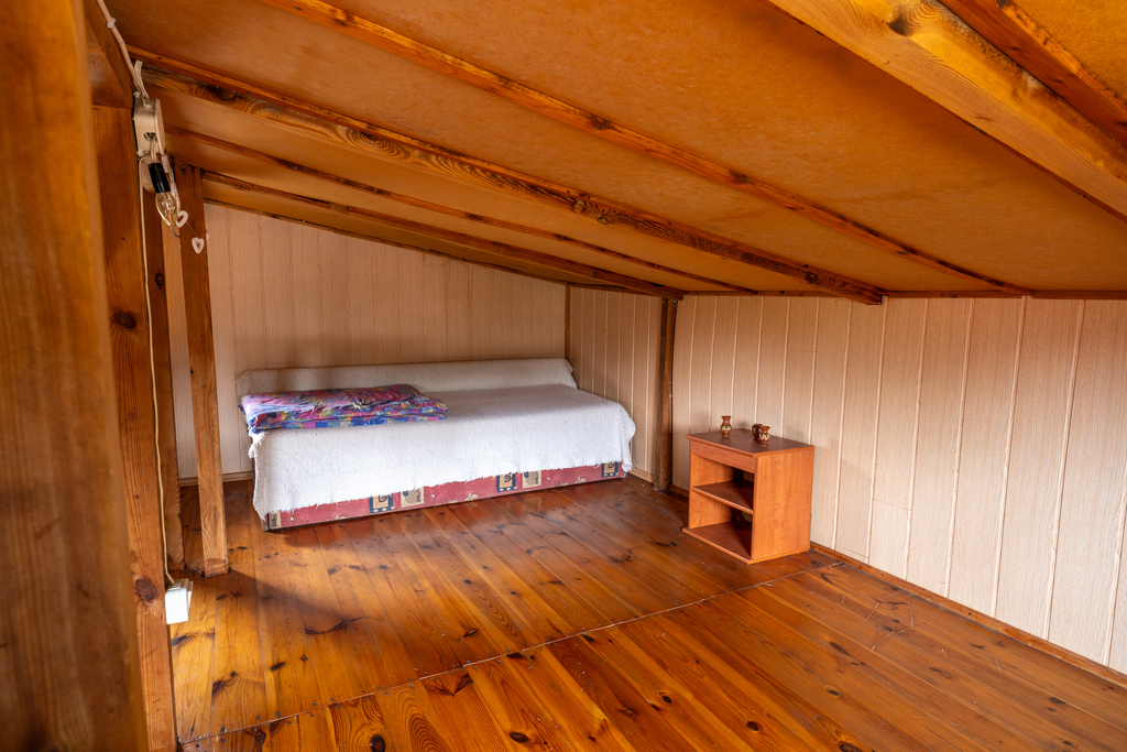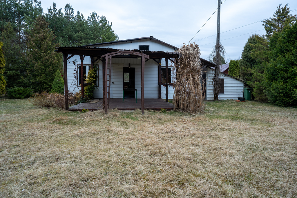 Dom letniskowy: budynek wolnostojący w konstrukcji drewnianej, stan: do drobnego remontu, poddasze: użytkowe, dach: skośny, pokryty onduliną, okna: PCV, drzwi wejściowe: drewniane.