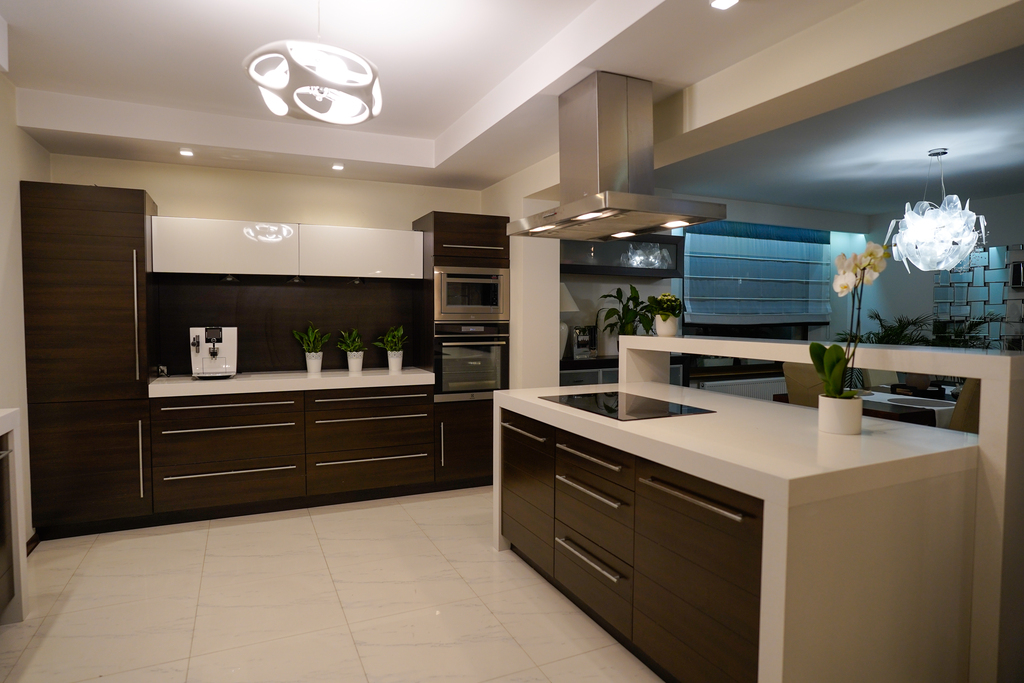 widna kuchnia z pełnym wyposażeniem: meble w zabudowie, lodówka, zmywarka, okap, piekarnik, mikrofalówka, płyta elektryczna,