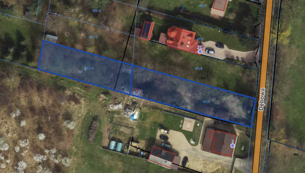 Biuro Nieruchomości DYMOWSKI. zaprasza do zapoznania się z ofertą sprzedaży działek nr 483/9, 483/14 (obręb Zakrzew) zlokalizowanych w Kłobucku przy ul. Dębowej.