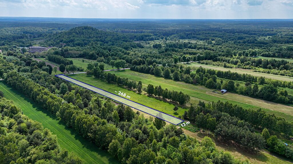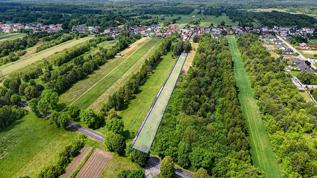 Działka znajduje się w dogodnej lokalizacji – bezpośrednio przy Drodze Wojewódzkiej nr 494, co zapewnia doskonały dojazd oraz bardzo dobrą widoczność z trasy o wysokim natężeniu ruchu.