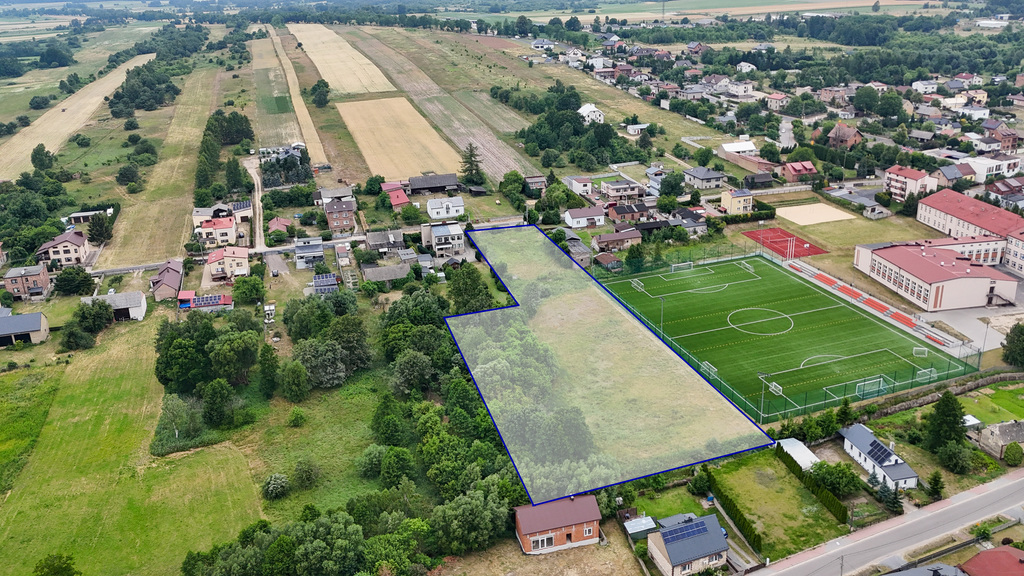 Działka położona w wyjątkowo atrakcyjnej lokalizacji, idealna pod zabudowę mieszkaniową lub inwestycyjną. Znajduje się bezpośrednio przy boisku szkolnym, w sąsiedztwie szkoły, apteki, ośrodka zdrowia, licznych sklepów, siłowni, biblioteki oraz innych punktów usługowych. Okolica jest spokojna i bezpieczna, z dominującą niską zabudową mieszkaniową, co zapewnia komfort i prywatność. Dodatkowym atutem jest bliskość przystanku autobusowego, co gwarantuje świetne połączenie z innymi częściami miasta. To doskonałe miejsce dla rodzin, osób ceniących wygodę oraz inwestorów szukających gruntu w świetnie skomunikowanej i rozwiniętej lokalizacji.