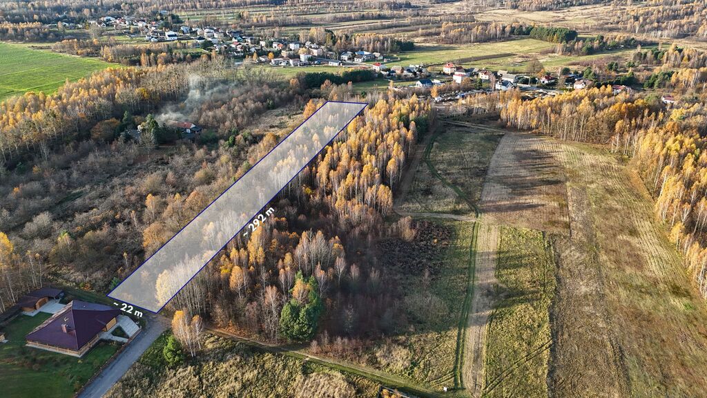 Powierzchnia: ok. 6 460 m²,Wymiary: ok. 22 m x ok. 292 m,Kształt: prostokątny,Dostęp do drogi publicznej: bezpośredni, droga dojazdowa: utwardzona,Stan prawny: pełna własność,Istnieje możliwość podziału działki.