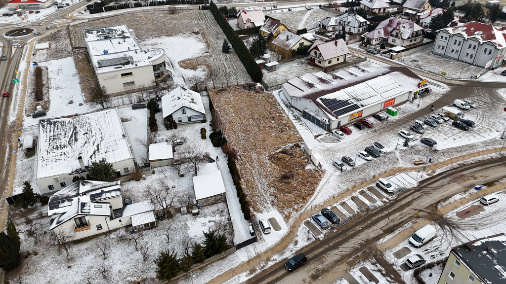 Nieruchomość położona jest w bardzo atrakcyjnej części miasta, w bezpośrednim sąsiedztwie sklepu Biedronka, co gwarantuje stały ruch klientów i doskonałą ekspozycję planowanej inwestycji. W najbliższej okolicy znajdują się liczne punkty handlowe i usługowe, zabudowa mieszkaniowa oraz pełna infrastruktura miejska. To lokalizacja, która łączy wygodę codziennego funkcjonowania z dużym potencjałem komercyjnym.