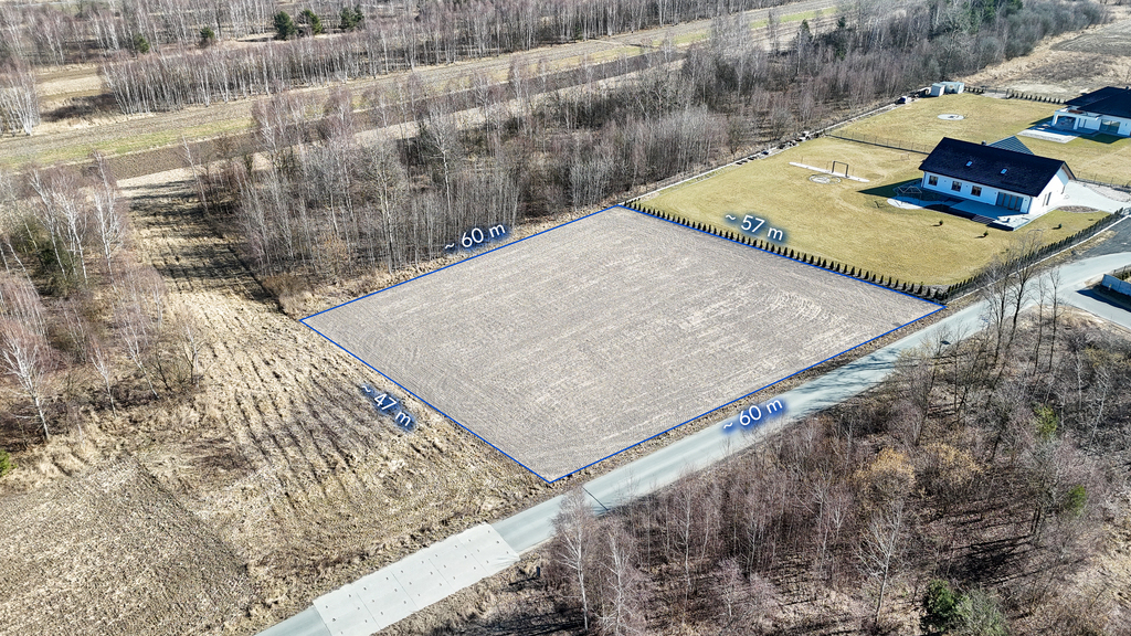 wymiary działki: ok. 60 m x 57 m x 60 m x 47 m,