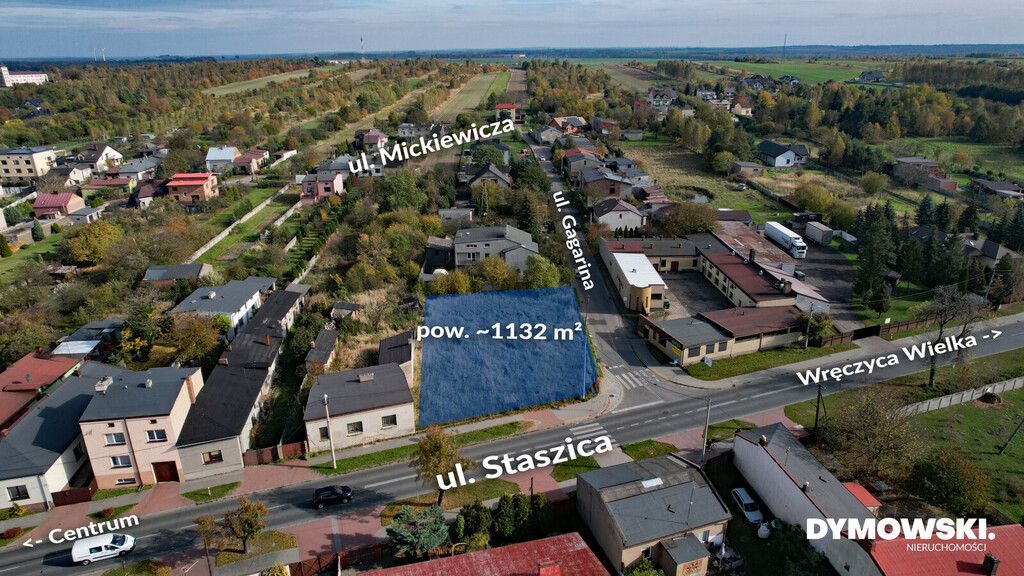 Biuro nieruchomości DYMOWSKI. zaprasza do wynajmu działki znajdującej się w Kłobucku przy skrzyżowaniu ulic Staszica i Gagarina (nr ewid. 3982, obręb 0002).
