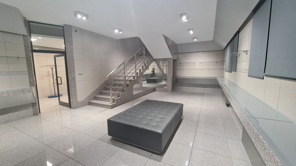 - budynek dwupiętrowy, na parterze znajduje się korytarz prowadzący do nowoczesnej sali sprzedaży, na piętrze mieści się dodatkowa część sali sprzedaży lub, w zależności od potrzeb, przestrzeń idealna na biura o powierzchni ~ 150m2,