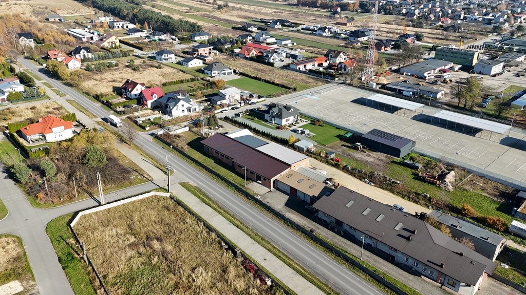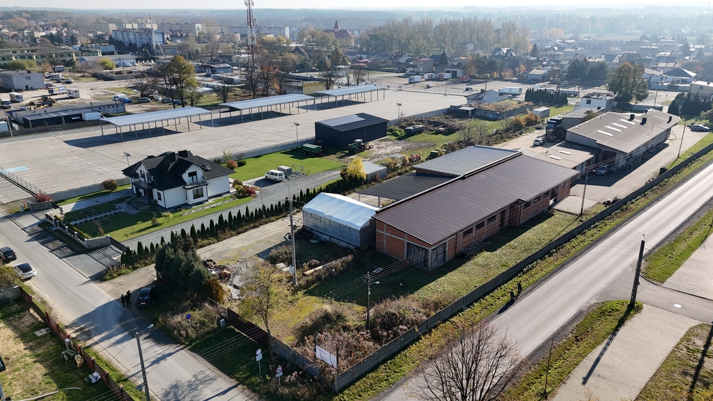 Nieruchomość znajduje się w Działoszynie – w strategicznym miejscu, zapewniającym wygodny dojazd zarówno dla pojazdów osobowych, jak i ciężarowych. Wygodny podjazd dla TIR-ów oraz parking na terenie sprawiają, że codzienna logistyka jest niezwykle komfortowa. Otoczenie sprzyja prowadzeniu działalności usługowej i produkcyjnej, a dostęp do głównych dróg ułatwia kontakt z klientami i dostawcami.