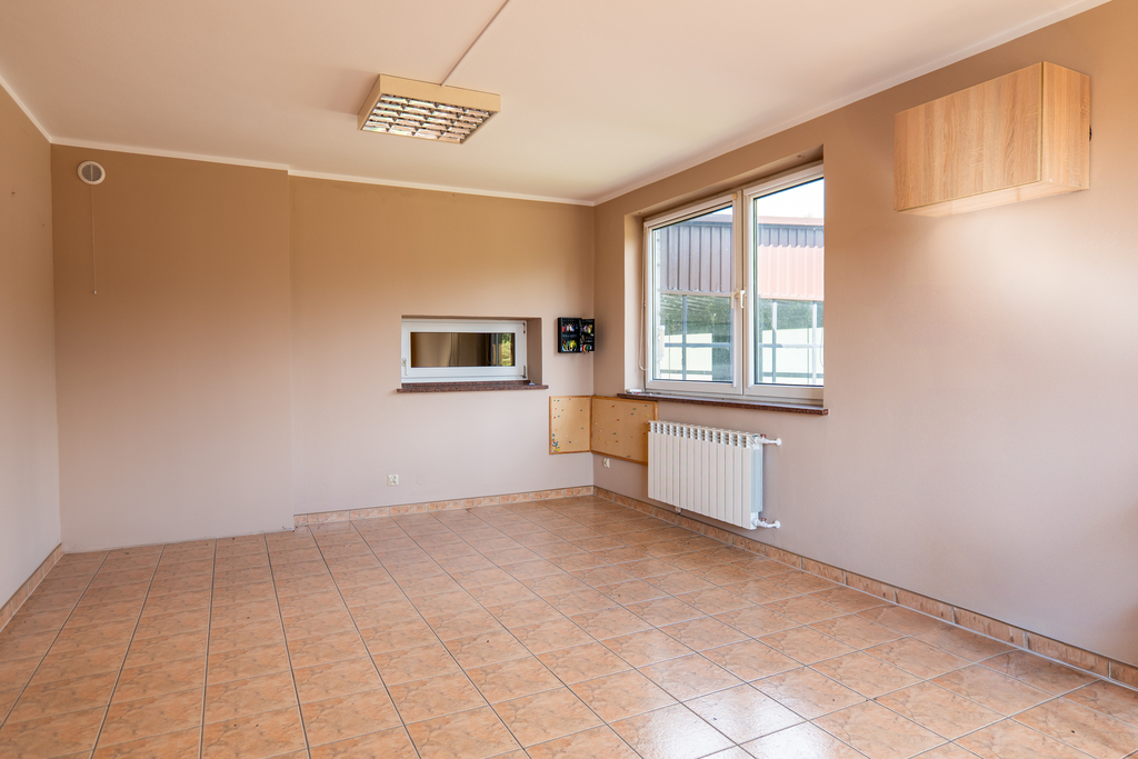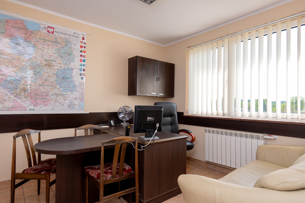 powierzchnia użytkowa ~ 65 m²,przestronne biuro, zapewniające komfortową przestrzeń do pracy,dodatkowe pomieszczenie – idealne jako archiwum, sala spotkań lub magazyn,pomieszczenie socjalne z miejscem na aneks kuchenny,łazienka z toaletą i umywalką,media: woda, prąd, ogrzewanie- CO własne, kanalizacja miejska,