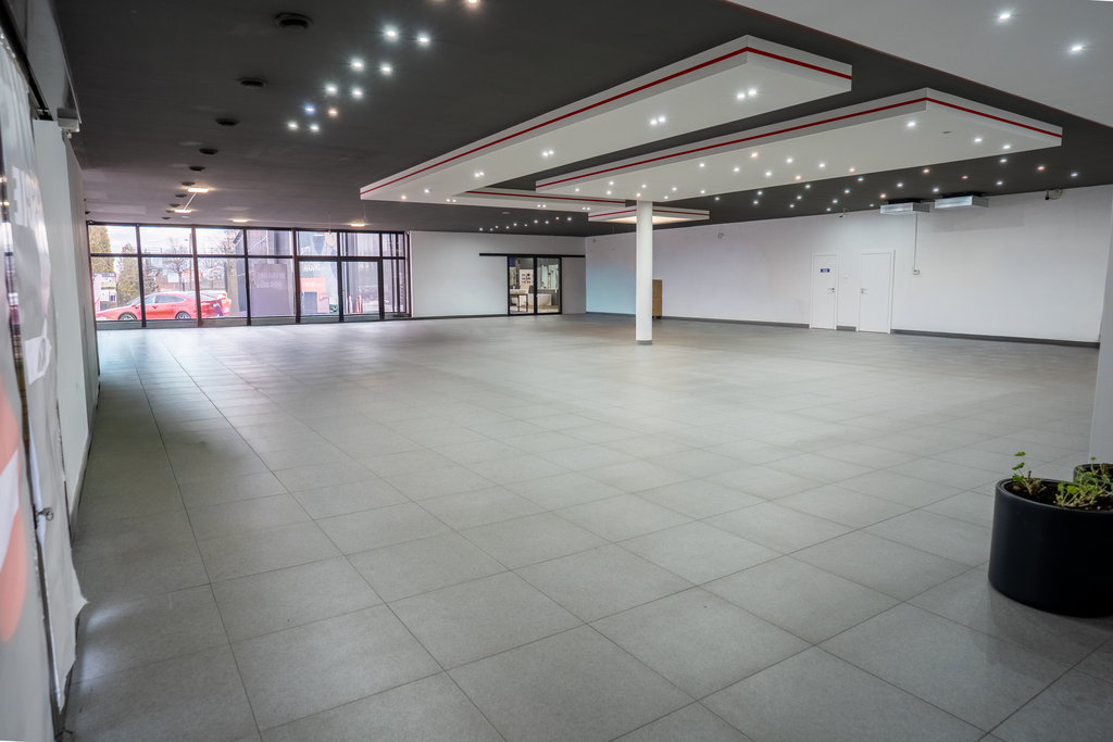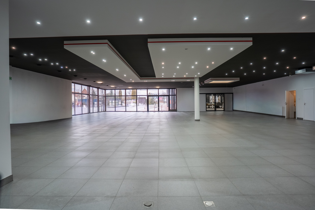Oferujemy przestronny lokal handlowo-usługowy usytuowany na parterze, z wygodnym wejściem od frontu (drzwi przesuwne), zapewniającym komfortowy dostęp dla klientów oraz swobodną organizację dostaw. Powierzchnia użytkowa 200 m² stanowi jedną dużą, otwartą przestrzeń z możliwością wydzielenia stref sprzedażowych, biurowych lub magazynowych – w zależności od potrzeb najemcy.