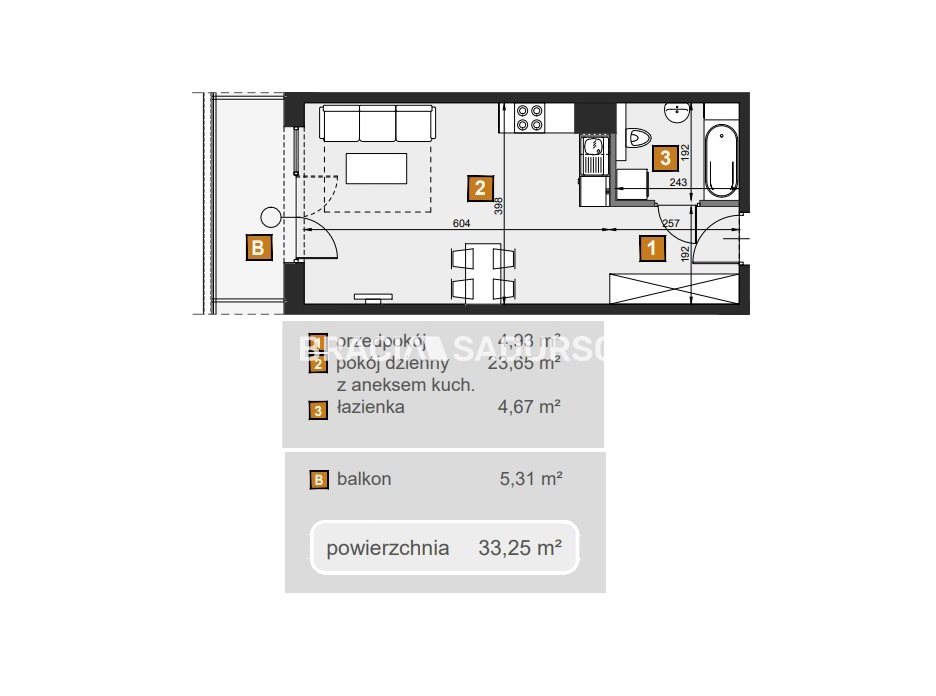 | Pow. użytkowa: | 33.25 m² |