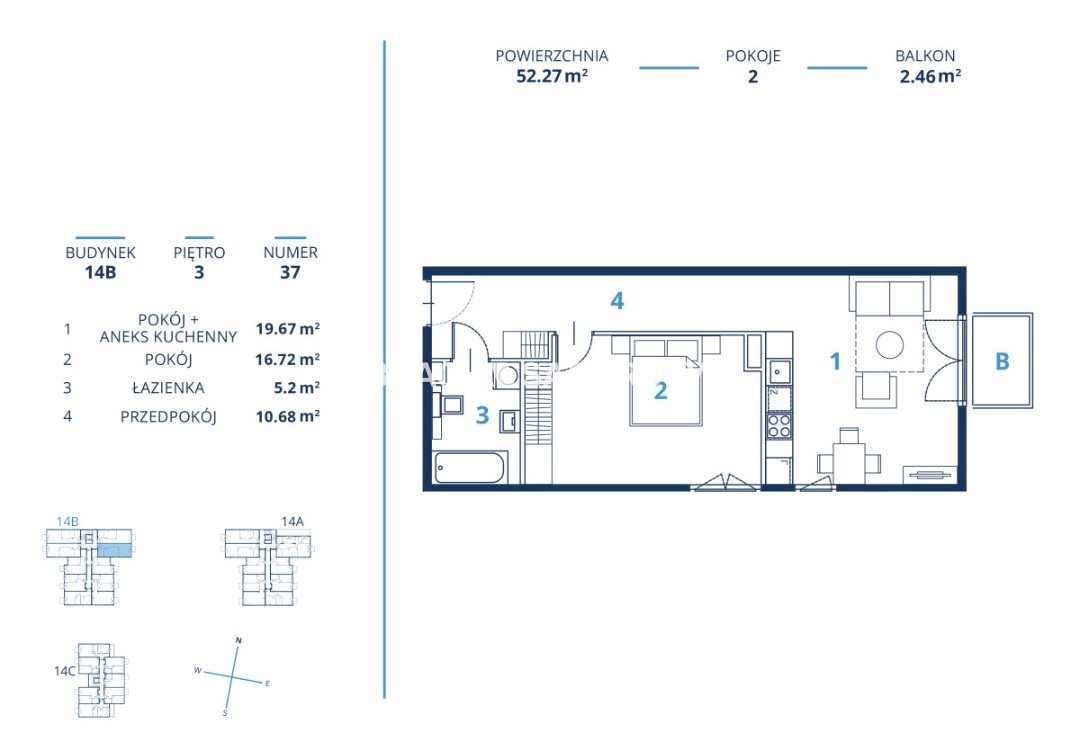 Metraże od 32m2 - 70m2 (-1,-2,-3, pokojowe)
