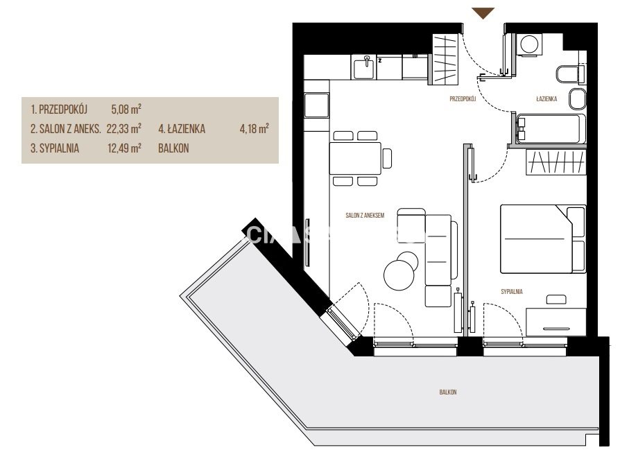 | Liczba sypialni: | 1 |