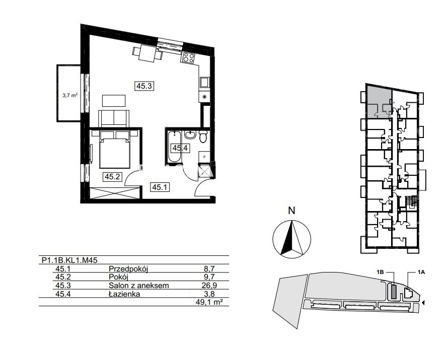 | Liczba sypialni: | 1 |