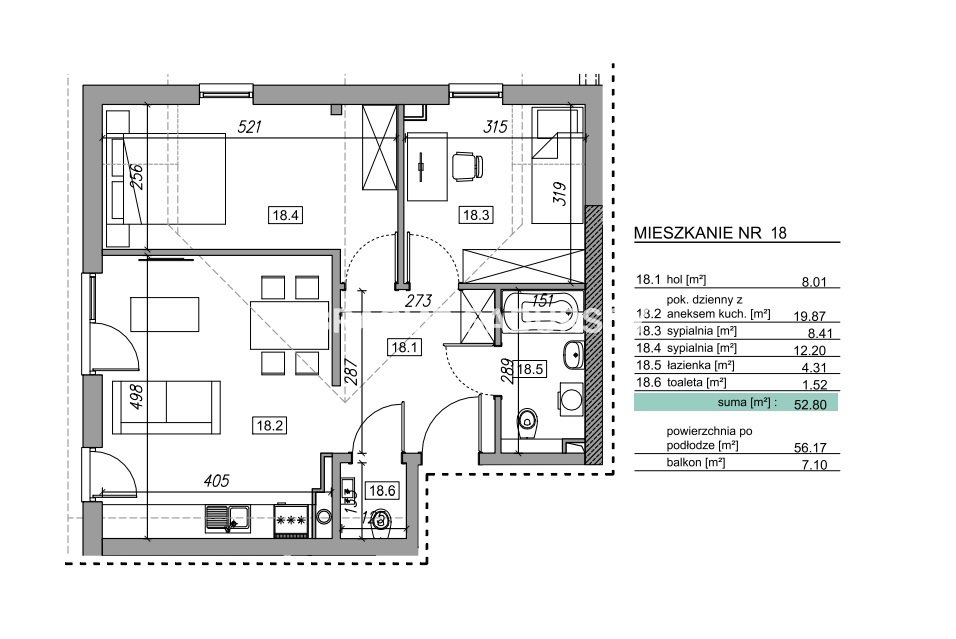 | Pow. całkowita: | 52.8 m² |