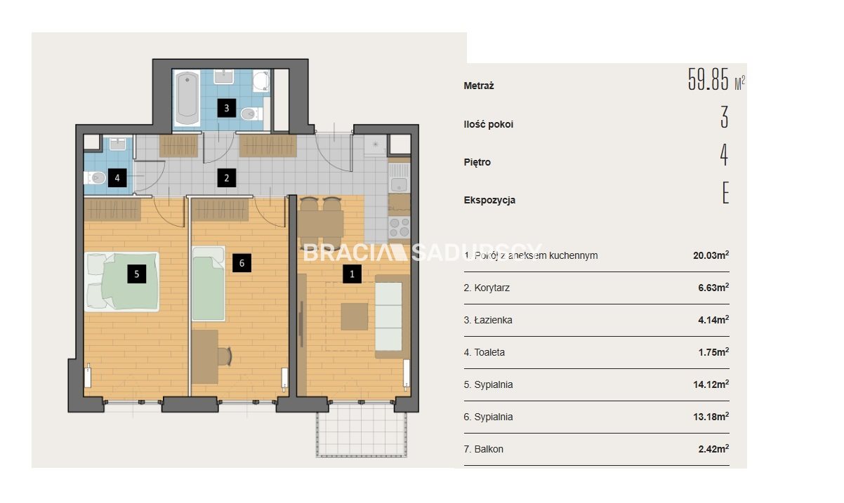 | Pow. użytkowa: | 59.85 m² |
