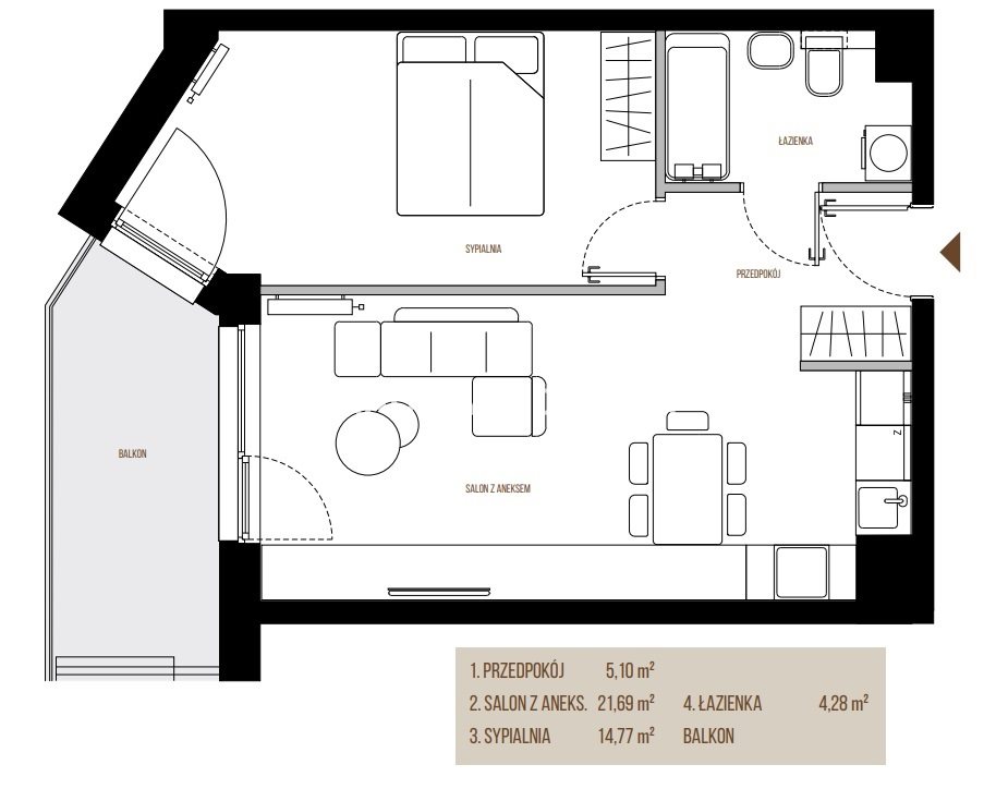 | Liczba sypialni: | 1 |