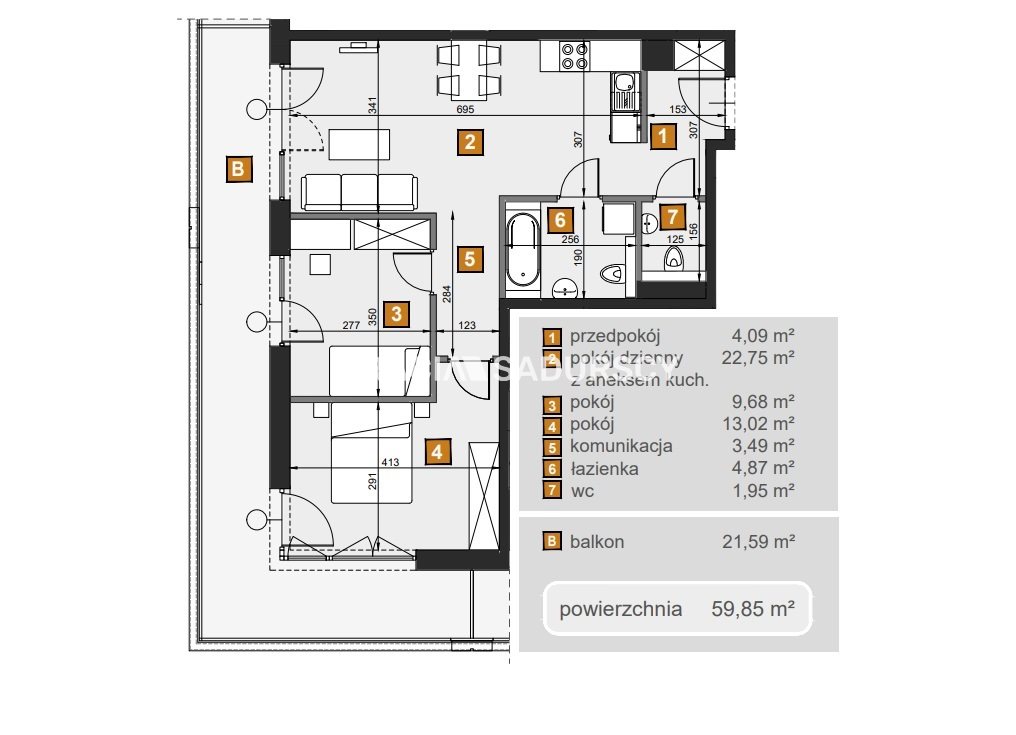 | Pow. użytkowa: | 59.85 m² |