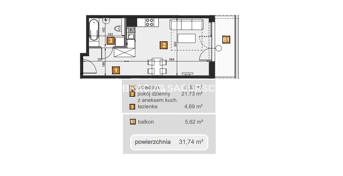 | Pow. użytkowa: | 31.74 m² |
