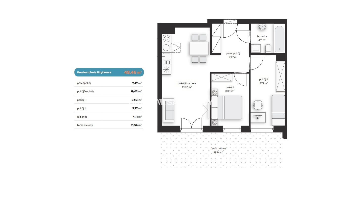 Każdy lokal posiada balkon, taras lub ogródek , stanowiący doskonałą przestrzeń do wypoczynku w otoczeniu zieleni.