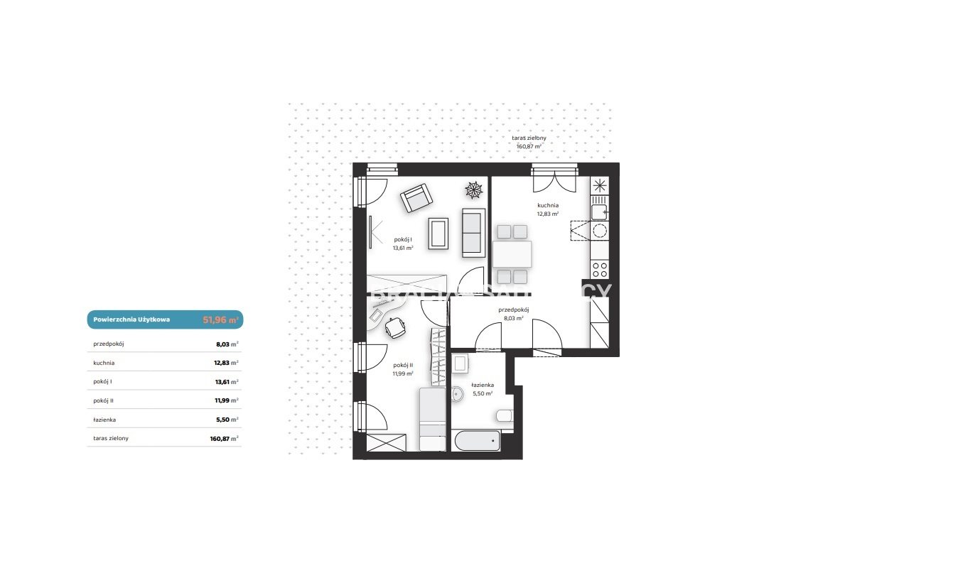 Każdy lokal posiada balkon, taras lub ogródek , stanowiący doskonałą przestrzeń do wypoczynku w otoczeniu zieleni.