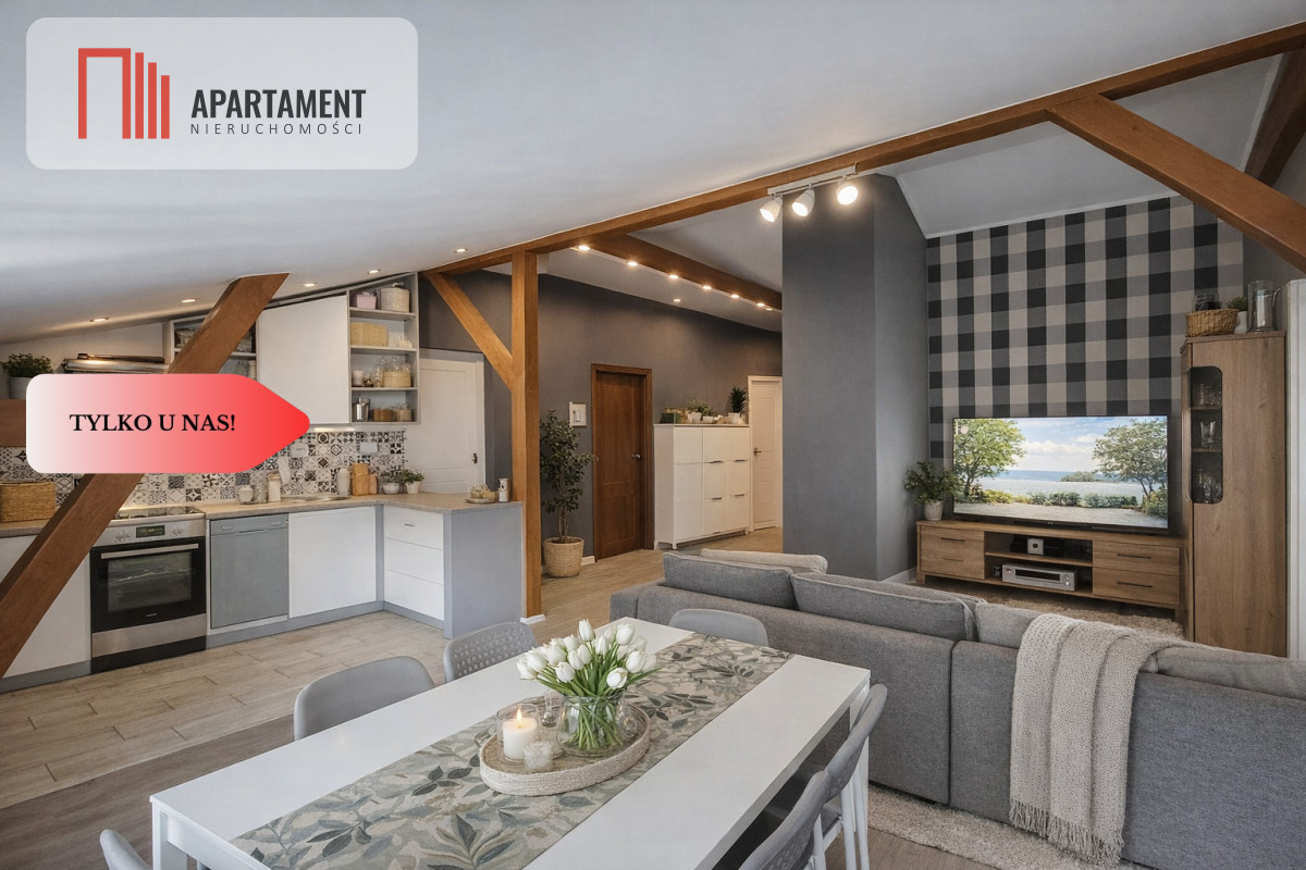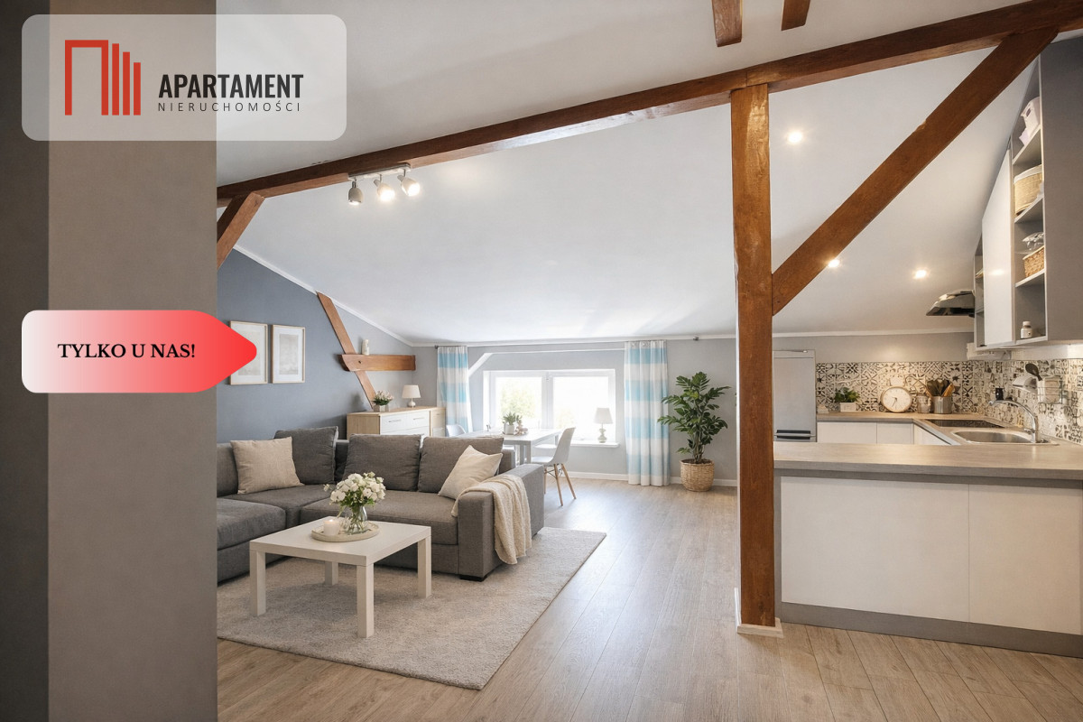 Wyobraź sobie przestrzeń, która łączy klimat kamienicy z funkcjonalnością nowoczesnego mieszkania. Wysokie skosy, oryginalne belki i ogromna przestrzeń sprawiają, że to miejsce ma niepowtarzalny charakter i potencjał aranżacyjny.