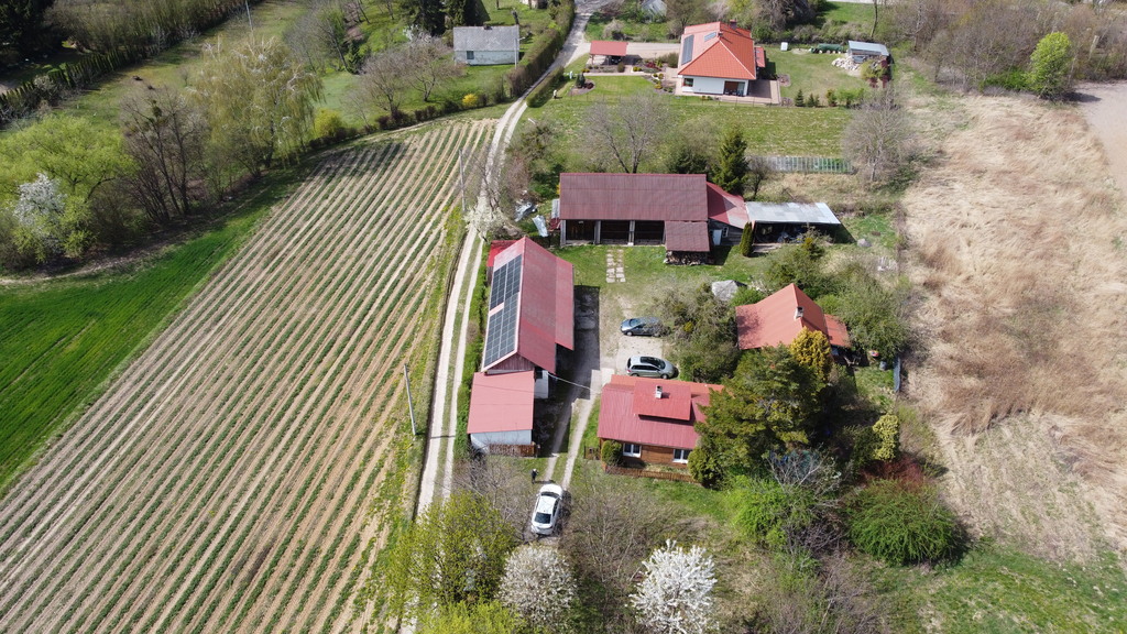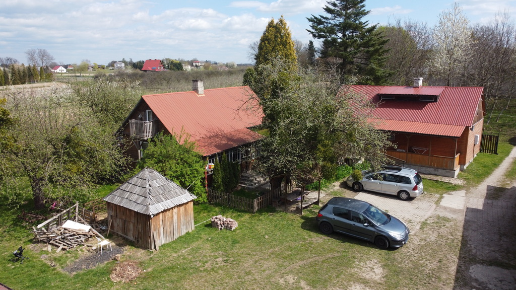 Na sprzedaż unikalna nieruchomość siedliskowa położona w miejscowości Skowieszynek (gmina Kazimierz Dolny), obejmująca dwie zabudowy mieszkalne plus budynku gospodarcze usytuowane na działce nr 183/2. Działka z możliwością podziału na dwie części. Pierwsza pod zabudową, druga niezabudowana. Możliwość zakupu tylko części niezabudowanej działki.domy wykonane z drewna. Pierwszy z nich parterowy z użytkowym poddaszem oraz piwnica. Dom po generalnym remoncie w bardzo dobrym stanie. Składa się z przedsionka, pokoju z aneksem kuchennym, sypialni oraz łazienki. Z boku budynku mamy schody zewnętrzne do pomieszczeń na poddaszu. Z podestu przed wejściem mamy wejście do części piwnicznej domu. Dom może być wykorzystany na własne potrzeby jak również jako inwestycje pod wynajem. drugi dom również wykonany z drewna z możliwością wynajęcia. oprócz dwóch budynków mieszkalnych na posesji mamy murowany magazyn(przechowalnię) oraz murowano-drewniana stodołę. W budynkach nie jest prowadzona działalność rolniczą. Wykorzystywane są jako magazyn. W stodole odbywały się przedstawienia oraz występy artystyczne. Zamontowane krzesełka tworzące widownię (widoczna na zdjęciach). Na zapleczu stodoły wygospodarowane pomieszczenia z zapleczem sypialnym.Nieruchomość znajduje się w jednym z najbardziej malowniczych regionów Lubelszczyzny – zaledwie kilka minut od Kazimierza Dolnego, jednego z najpopularniejszych ośrodków turystycznych w Polsce. Okolica łączy kameralny, wiejski charakter z bliskością pełnej infrastruktury turystycznej, gastronomicznej i kulturalnej.