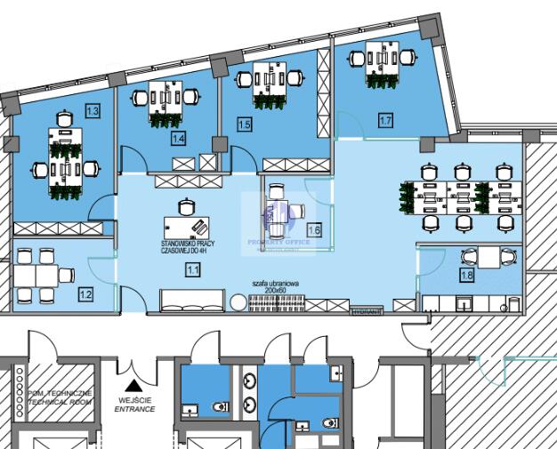 -duży pokój biurowy ze stanowiskiem do pracy czasowej,