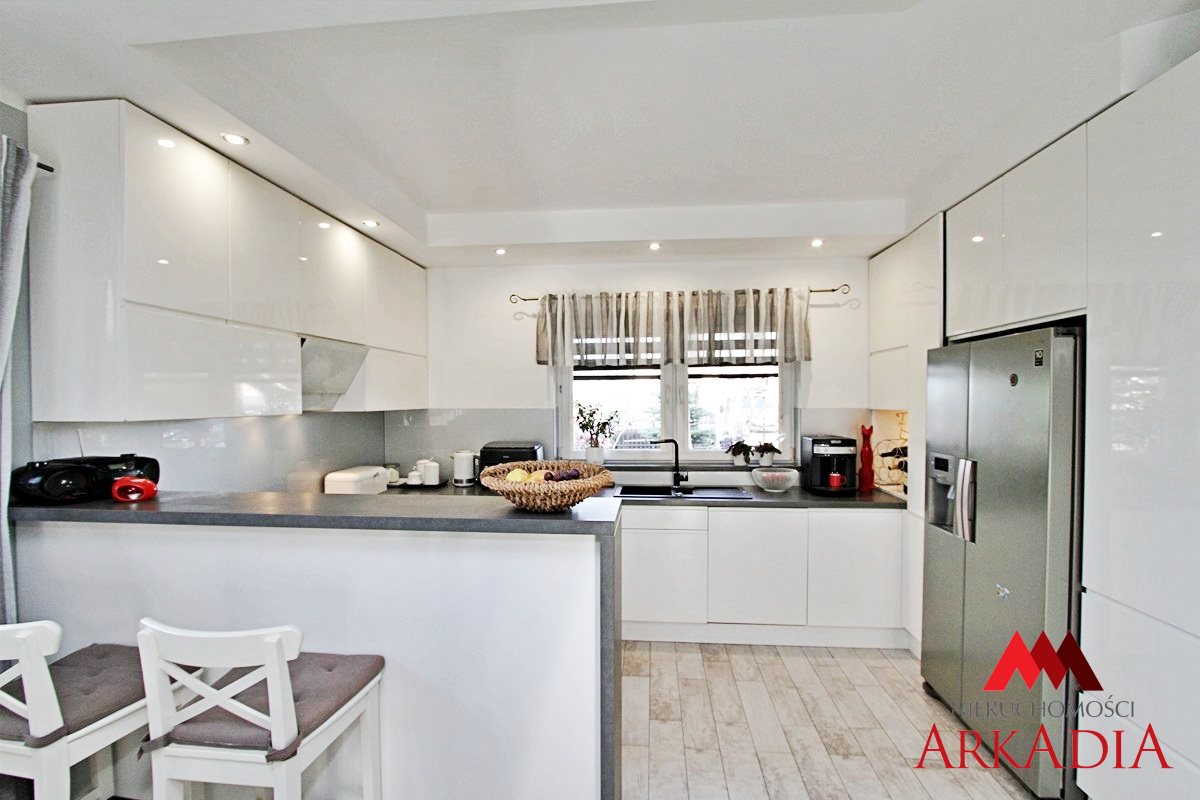 Posiada otwartą przestrzeń, gdzie kuchnia łączy się z jadalnią i salonem.