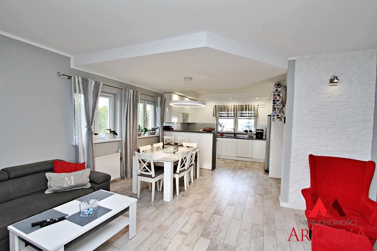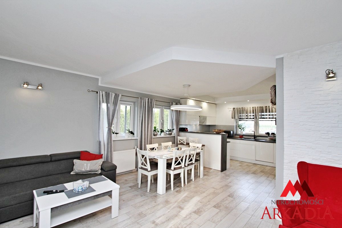 Arkadia Nieruchomości prezentuje na sprzedaż przestronny, jednorodzinny, dom o powierzchni użytkowej wynoszącej 117,70 m² plus 21,5 m ² garaż , zlokalizowany w Bogucinie gm. Fabianki z garażem w bryle . Dom został oddany do użytku w 2012 roku.