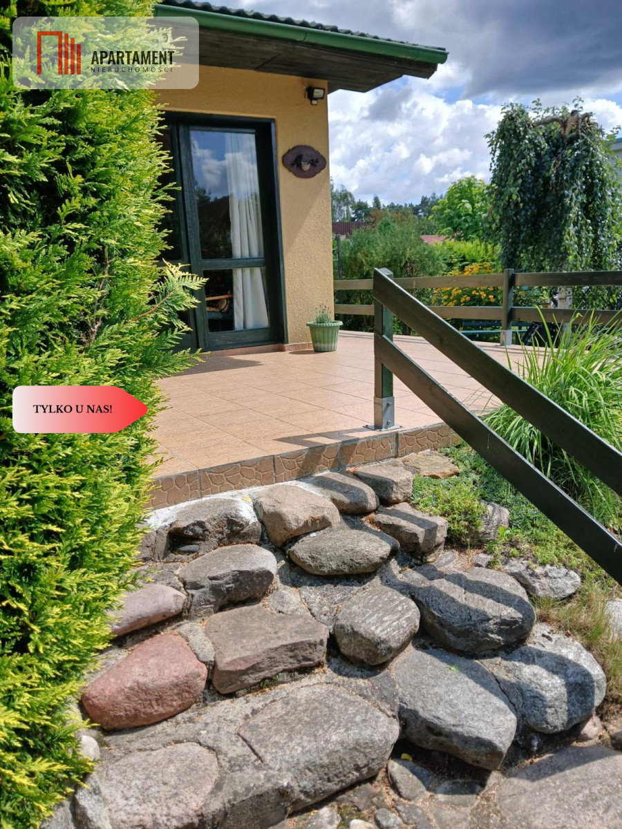 DOMEK: Murowany, podpiwniczony, wykończony z dbałością o każdy detal: • Salon z kominkiem • Sypialnia • Kuchnia i Łazienka: zabudowa, pełne wyposażenie, • Zaplecze: W piwnicy znajdziesz warsztat dla majsterkowicza i przytulny pokój. • Pod tarasem duże pomieszczenie gospodarcze
