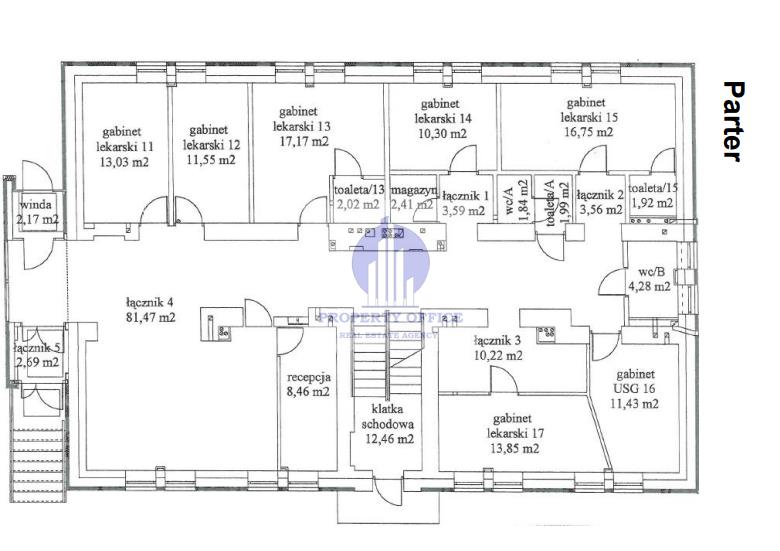 -Parter 230,99 m2 (recepcja, 7 gabinetów lekarskich, magazyn, toalety),