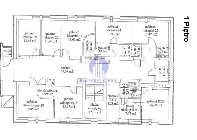 -I Piętro 233,73 m2 (7 gabinetów lekarskich, pracownia RTG, magazynek, toalety,)