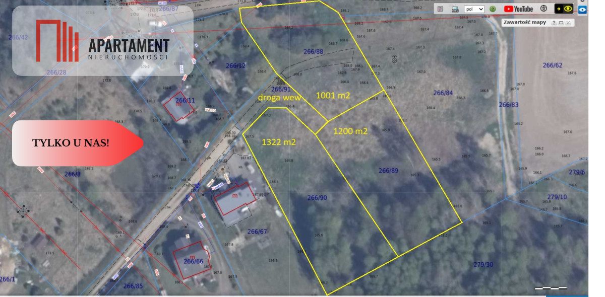 1: o nr: 266/88, powierzchnia 1001 m2, cena 200 tyś zł