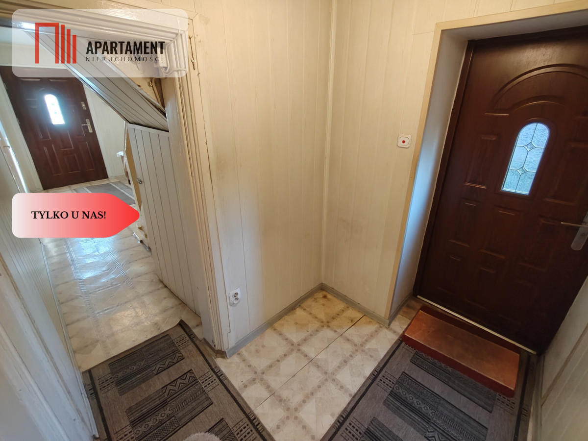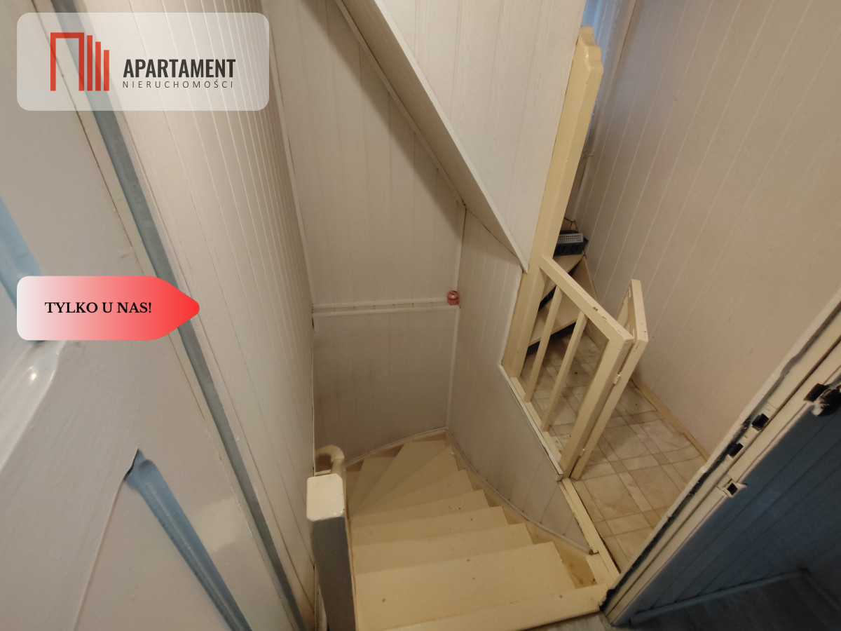 Parter: - korytarz łączący przód i tył domu, - 2 pokoje, - 2 pomieszczenia gospodarcze (kotłownia oraz skład opału), - mała toaleta, - schody prowadzące na piętro i poddasze, a od boku zejście do piwnicy. Układ oraz wielkość pomieszczeń na parterze idealnie nadaje się pod kątem prowadzenia działalności gospodarczej tj. fryzjer, salon kosmetyczny bądź biuro.