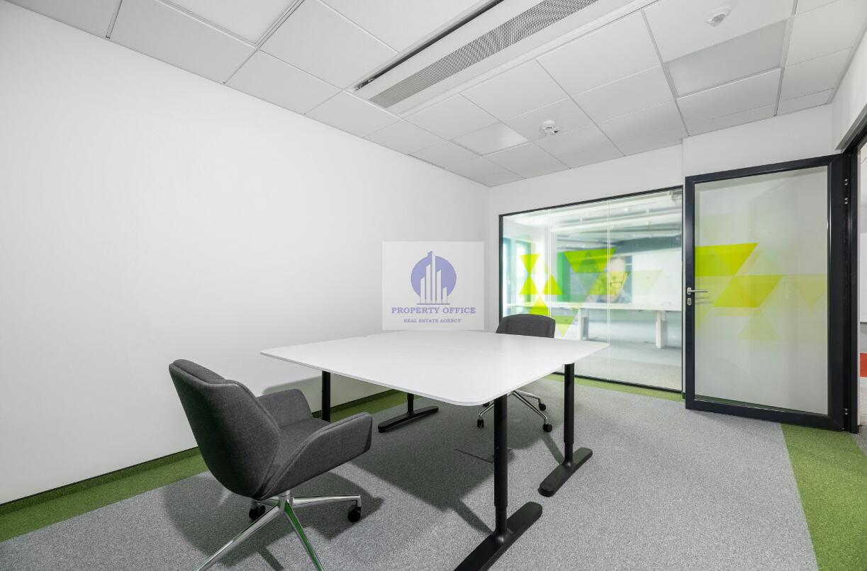 Podwieszany sufit w korytarzach, belki chłodzące, oświetlenie w części biurowej, uchylne okna, drzwi wejściowe, grzejniki, podniesiona podłoga, wyposażenie toalet, kontrola dostępu, 24h ochrona, BMS.