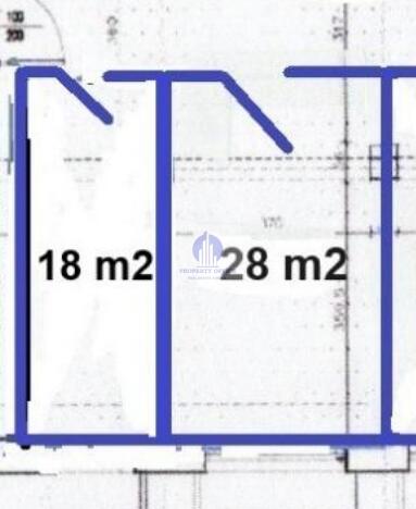 Oferowany lokal biurowy to dwa pokoje (18 m2 i 28 m2) usytuowane obok siebie.