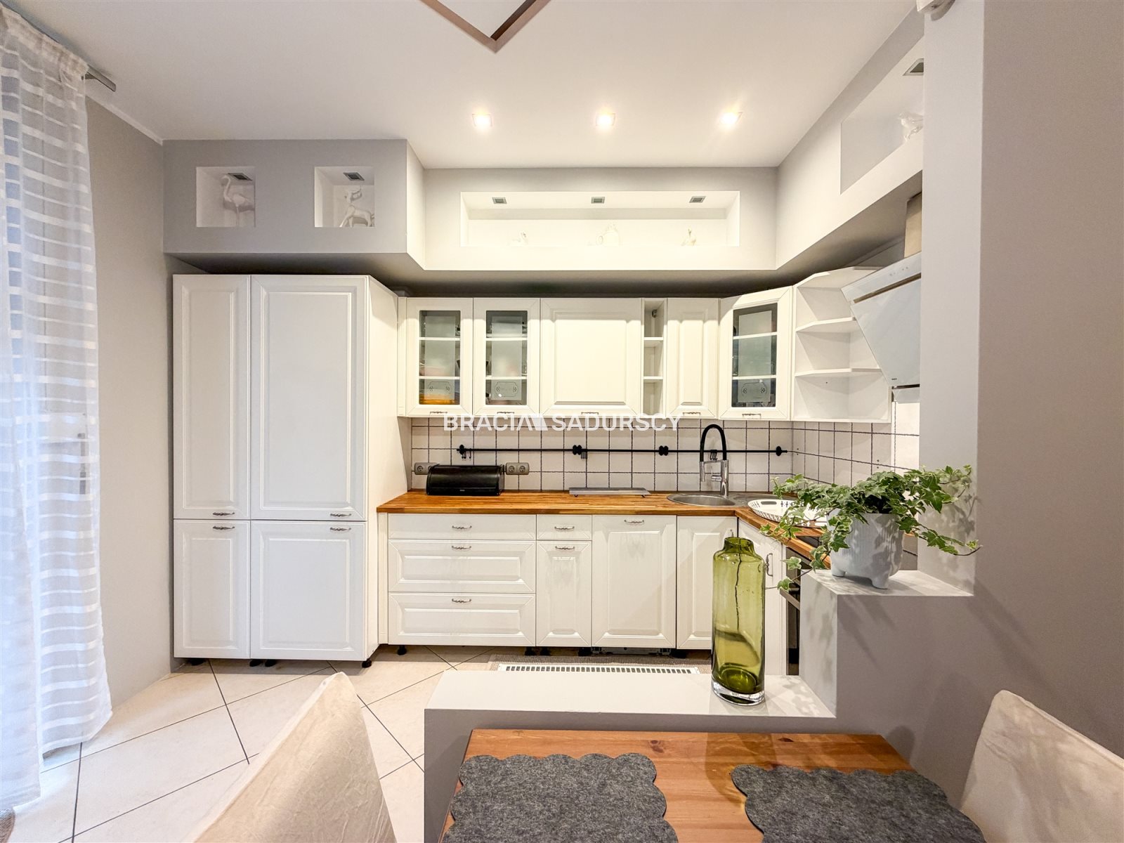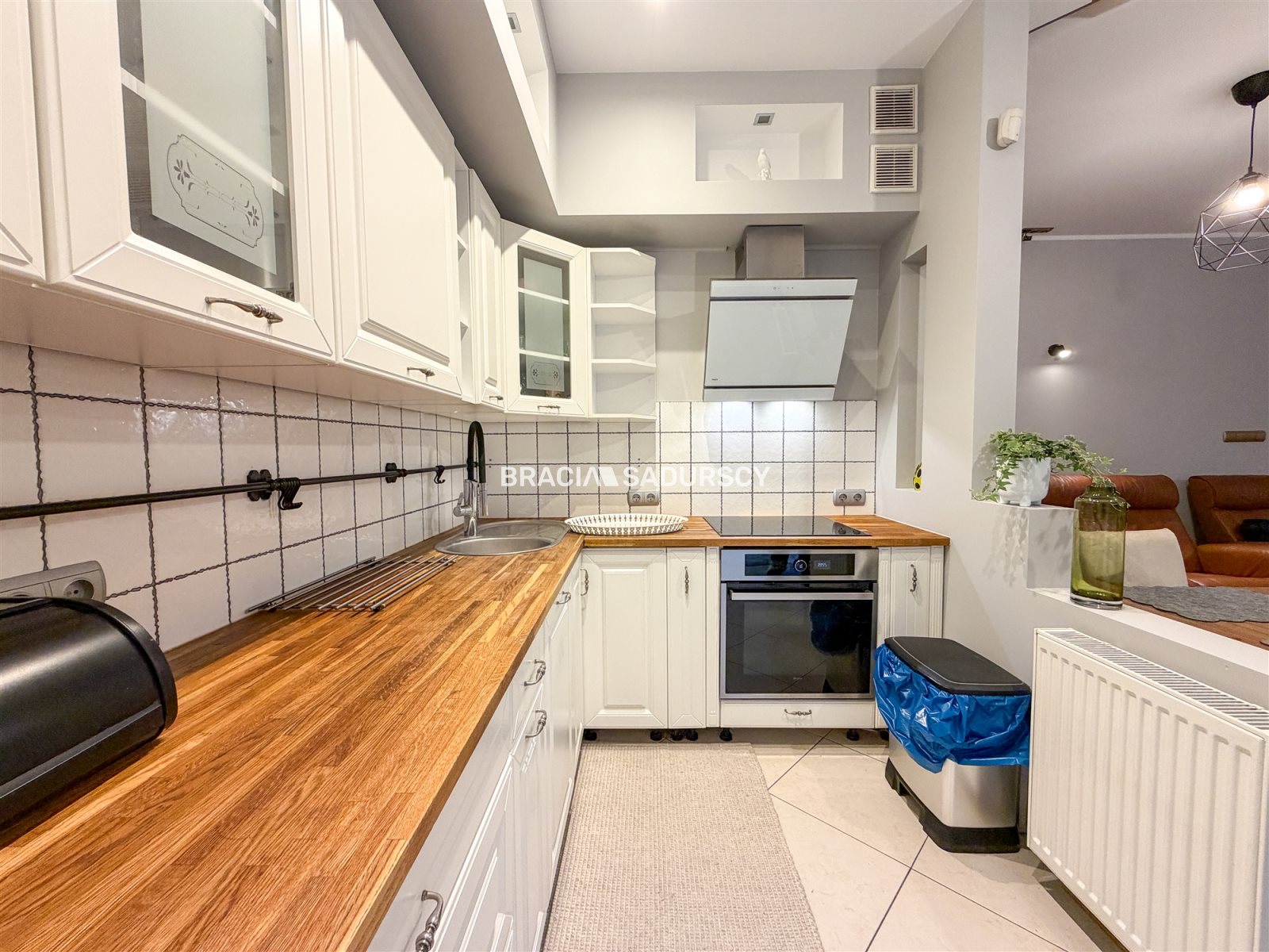 Mieszkanie jest świeżo po remoncie i zostało przygotowane z myślą o wygodnym najmie długoterminowym. W salonie znajduje się część wypoczynkowa z wyjściem na taras i ogród. Aneks kuchenny wyposażony jest w nowe sprzęty AGD, w tym lodówkę, zmywarkę, płytę indukcyjną oraz piekarnik.
