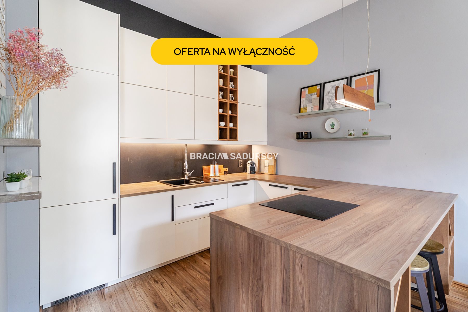 Mieszkanie w sercu starego Podgórza , 2 pokoje , w tym przestronny i funkcjonalny salon z jadalnią i dużym aneksem kuchennym .
