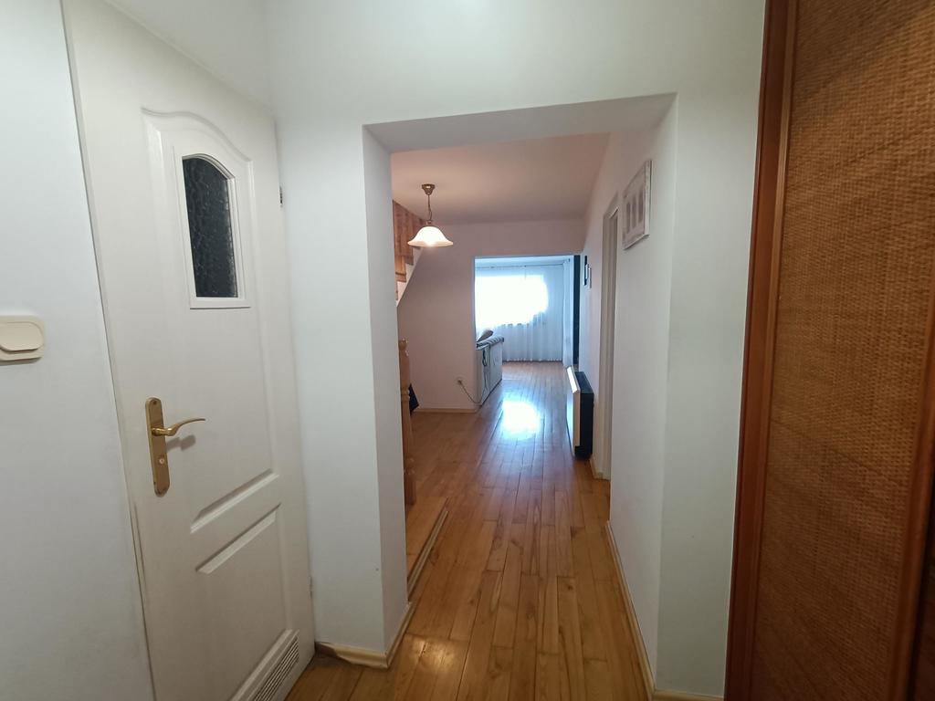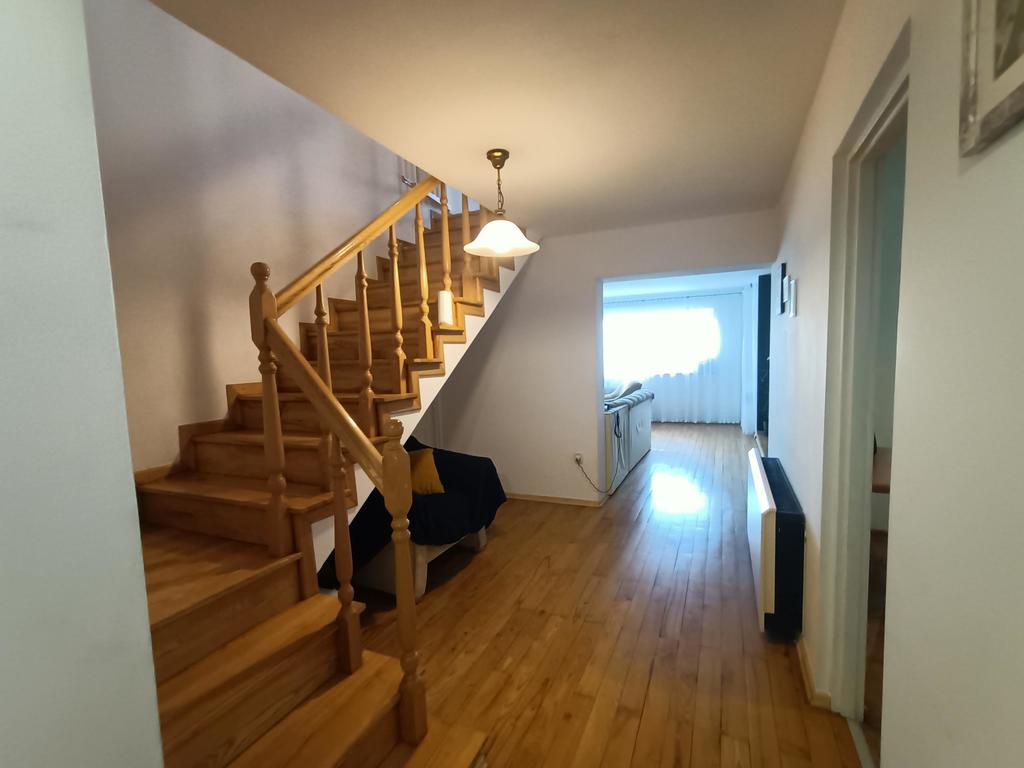 -wnętrze wykonane w podwyższonym standarcie: podłogi drewniane, kominek, okna w układzie poziomym, praktyczny i nowoczesny układ pomieszczeń (na parterze otwarta kuchnia 9,5 m kw z wydzieloną jadalnią 9,5 m kw oraz dużym salonem 27,5 m kw. Na piętrze pięć pokoi, duża łazienka, garderoba, balkon.
