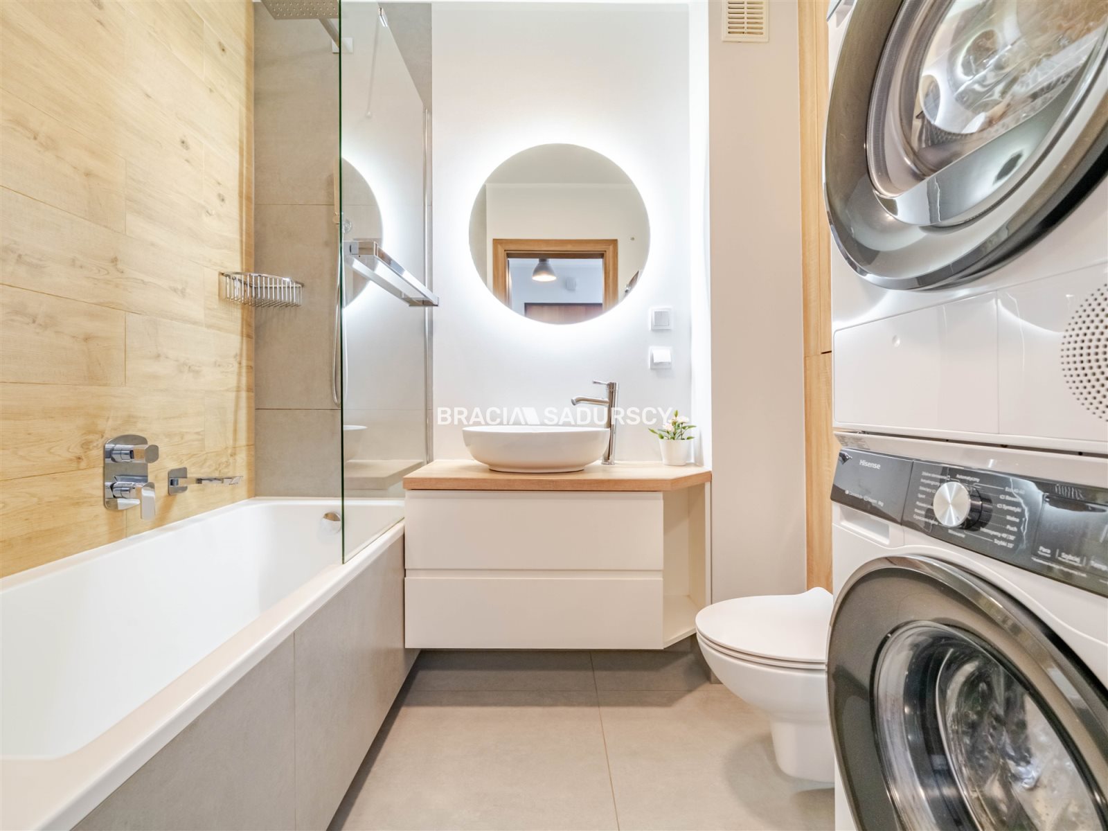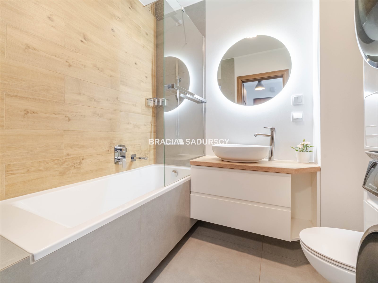 Mieszkanie wykończone materiałami wysokiej jakości - kuchnia i zabudowy meblowe wykonane na wymiar. Południowa ekspozycja i jasne wnętrza sprawiają, że lokal jest pełen światła i wyjątkowo przytulny.