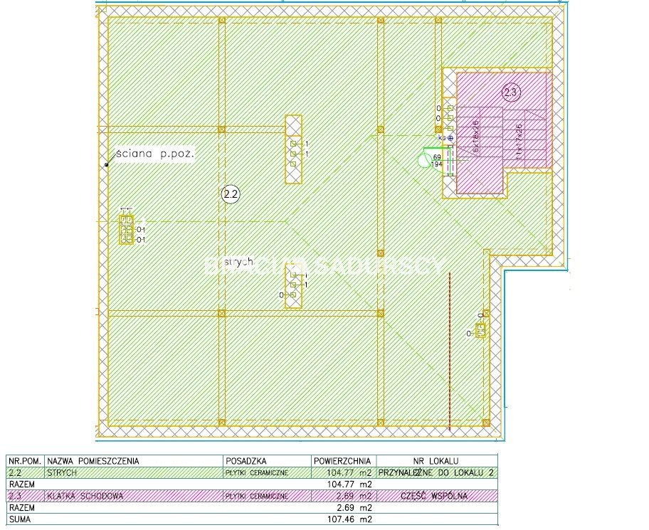 Poddasze o pow. 104 m² z możliwością wydzielenia dwóch kawalerek po 35 m² każda