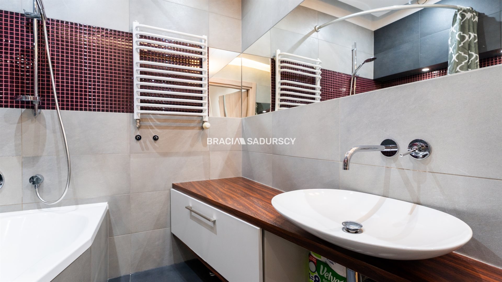 W skład mieszkania wchodzi przestronny salon z aneksem kuchennym i wyjściem na balkon, o pow. 27,50 m 2 , 2 pokoi o pow. 12,15 m 2 i 10,85 m 2 , łazienki ( 4,15 m 2 ), przedpokoju oraz osobnego wc. Wysokość pomieszczeń - 2,6 m. Mieszkanie w bardzo dobrym stanie, słoneczne, w pełni urządzone w wysokim standardzie. Ogrzewanie i ciepła woda z kotłowni osiedlowej. Ciche, komfortowe mieszkanie na zamkniętym osiedlu.