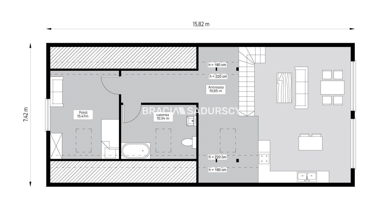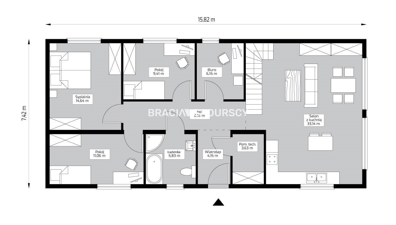 Harmonijny układ sprawia, że każdy centymetr domu jest efektywnie wykorzystany, zapewniając jednocześnie prywatność i otwartą przestrzeń dzienną.