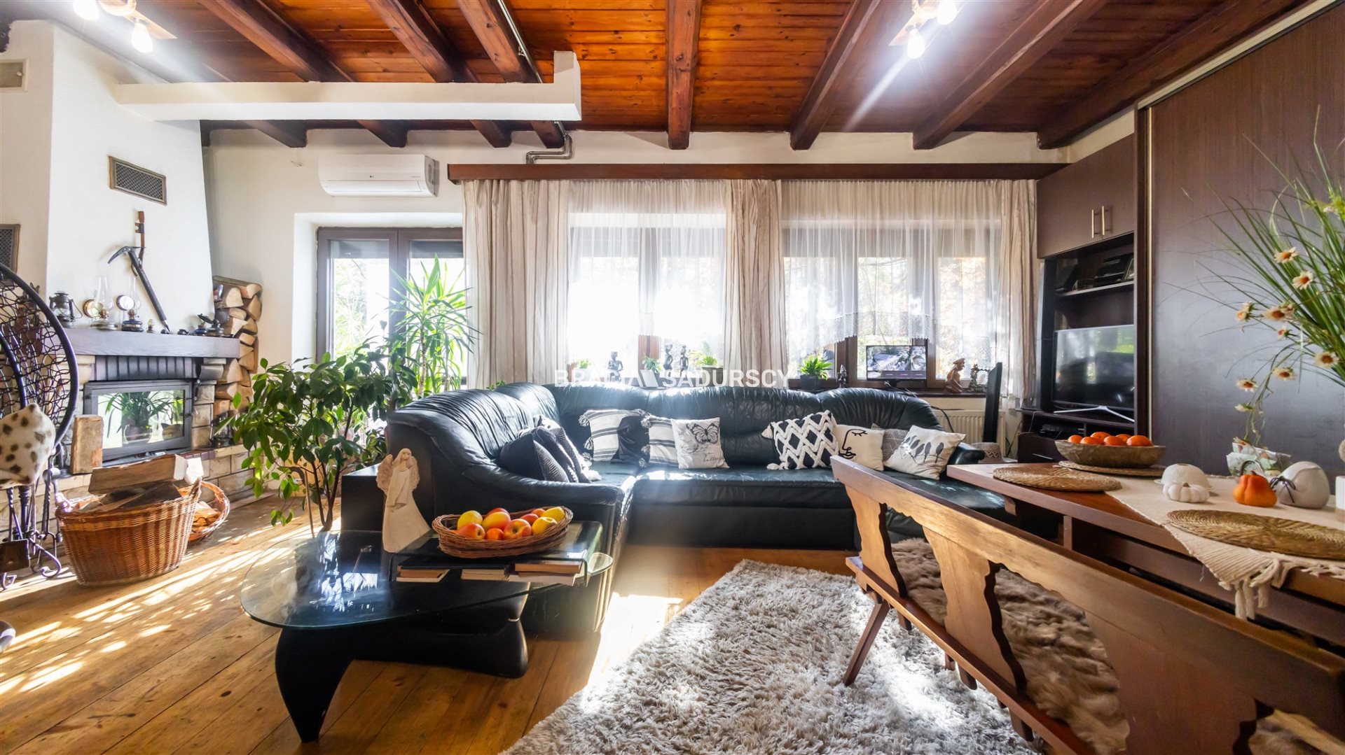 Obszerny salon z kominkiem (32 m2), który zapewni przytulny klimat w chłodniejsze dni. Salon ma bezpośrednie wyjście na taras o powierzchni około 40 m² z pięknym widokiem na lasy i góry.